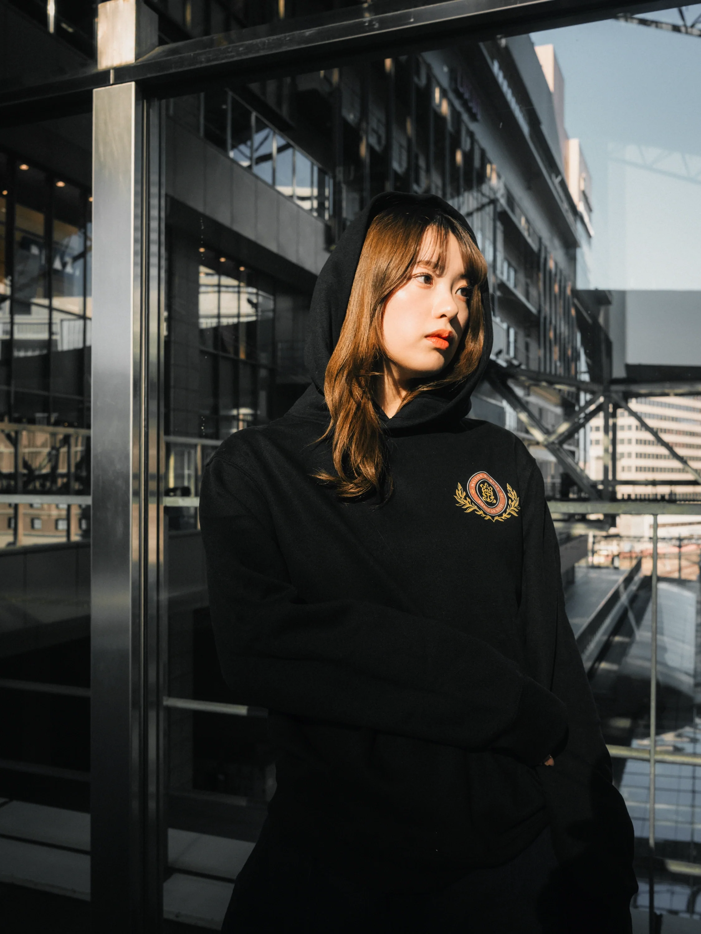The Belmont Box Hoodie reinterprets the Belmont family crest as a piece of heritage streetwear. The design centers around a red seal reading Maison Belmont — Chasse la Nuit (“House Belmont — Hunt the Night”), surrounded by golden laurels and classic lettering. The French lines below translate to "You are not alone" and "It is not death that we fear, but living without giving our best." It’s a modern take on an old emblem — something that feels more like it came from a family estate than a merch table, tying gothic influence to a clean, collectible look.